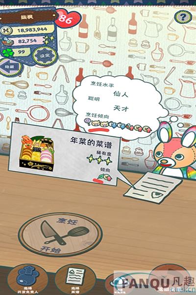 厨师的烹饪水平决定完成度方块出现的几率图厨师的聪明程度决定步数四厨师的综合水平越高,擅长方块出现的几率越高,完成度也会提高
