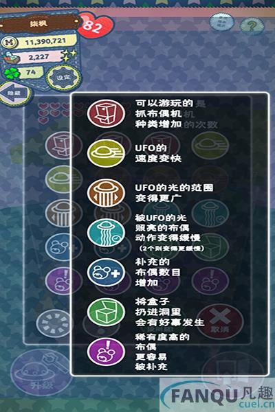 ⑥青。第4个天赋。共2个。在抓布偶的途中,UFO光线碰到的布偶会减慢速度。持续到下次娃娃机更新布偶。
