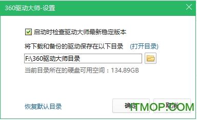 3.如果重装作业系统后需执行还原驱动,应提前完整保存复制整个驱动备份文件夹到其他盘中。驱动备份文件夹可在360驱动大师操作页面右上角点选设置,并可自行指定设置下载和备份的驱动保存目录位置(亦可点选恢复默认目录)。