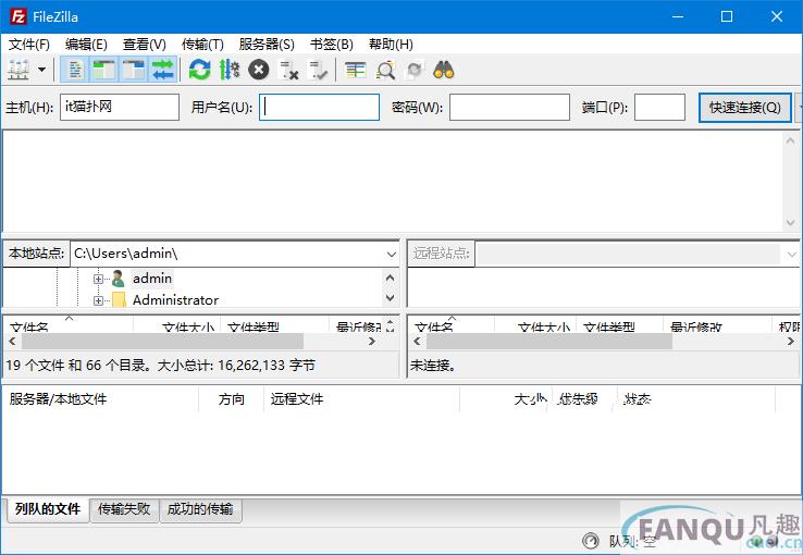 FileZilla是一个FTP软件,客户端如果需要和FTP服务器连接的话,需要主机的地址或者IP地址,然后再填上用户名,密码和端口号,就可以快速连接了。